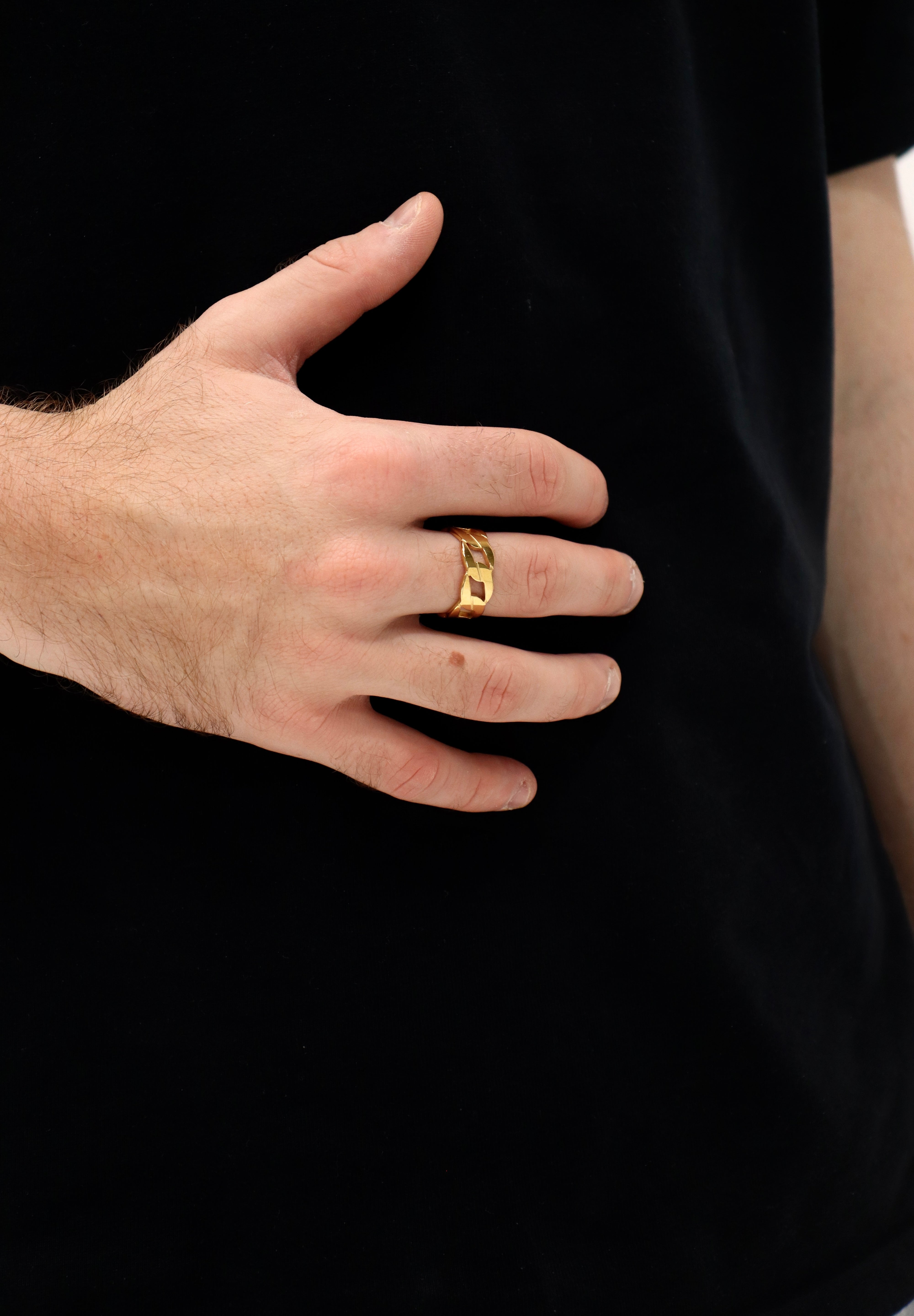 The Cuban Ring features a bold, iconic design inspired by the classic Cuban chain, known for its interlocking links and smooth, polished finish. This statement piece offers a perfect blend of sophistication and strength, making it a stylish accessory for both everyday wear and special occasions. Crafted with attention to detail, the Cuban Ring exudes timeless elegance and contemporary flair.
