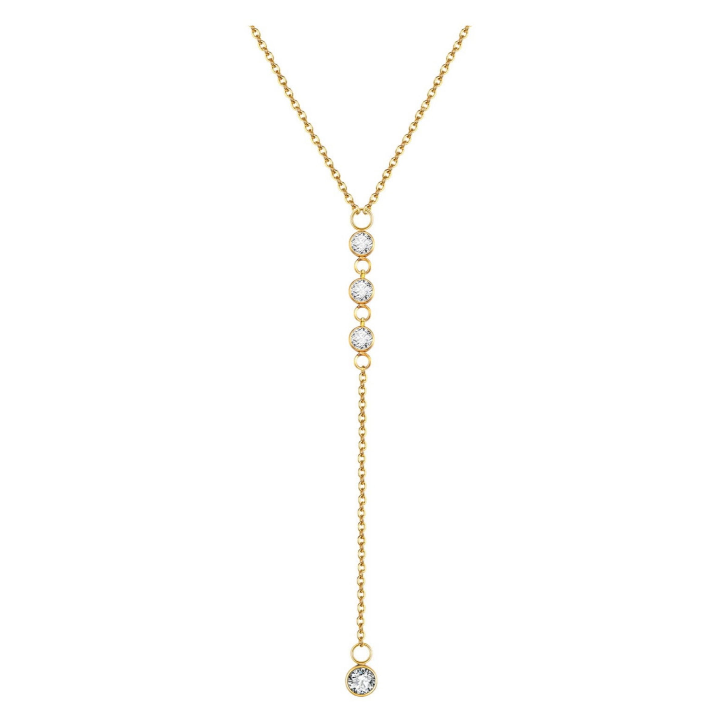 Effortless elegance meets modern sparkle with the Quinn Necklace. Designed in a sleek lariat style, this piece features a delicate drop adorned with several cubic zirconia stones, creating a cascade of light that catches every glance. Its minimal silhouette and refined detailing make it the perfect accessory to elevate any outfit—from everyday chic to evening sophistication.