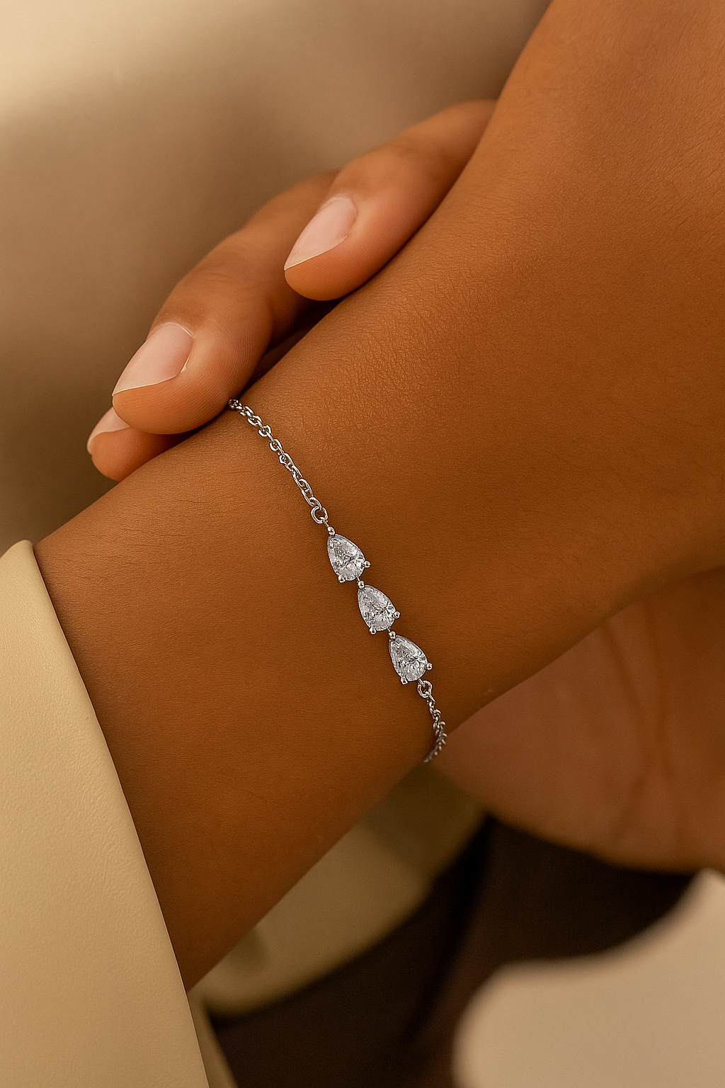 The Sierra Bracelet is a stunning piece of jewellery featuring a beautiful pear-shaped cubic zirconia at its centre, surrounded by a delicate band that enhances its elegance. With its sophisticated design and sparkling centre piece, this bracelet adds a touch of refined glamour to any outfit, making it perfect for both everyday wear and special occasions.